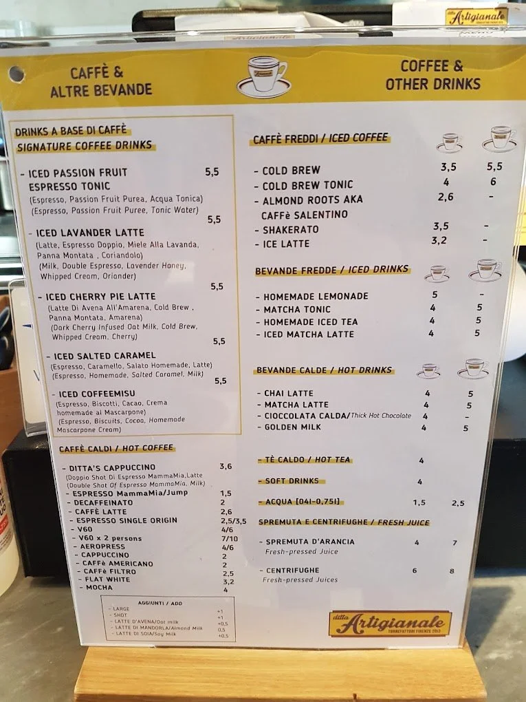 Great location - Online it looks like they have two cafes in Florence, but one was “temporarily closed” on my visit. I went to the one near a lot of Florence tourist spots like Pitti Palace (Palazzo Pitti) Ponte Vecchio (which means, old Bridge) and not along walk from the Duomo either. It’s a busy place but the location feels a little off the beaten path down the alley, so it’s a nice place to relax for a it.