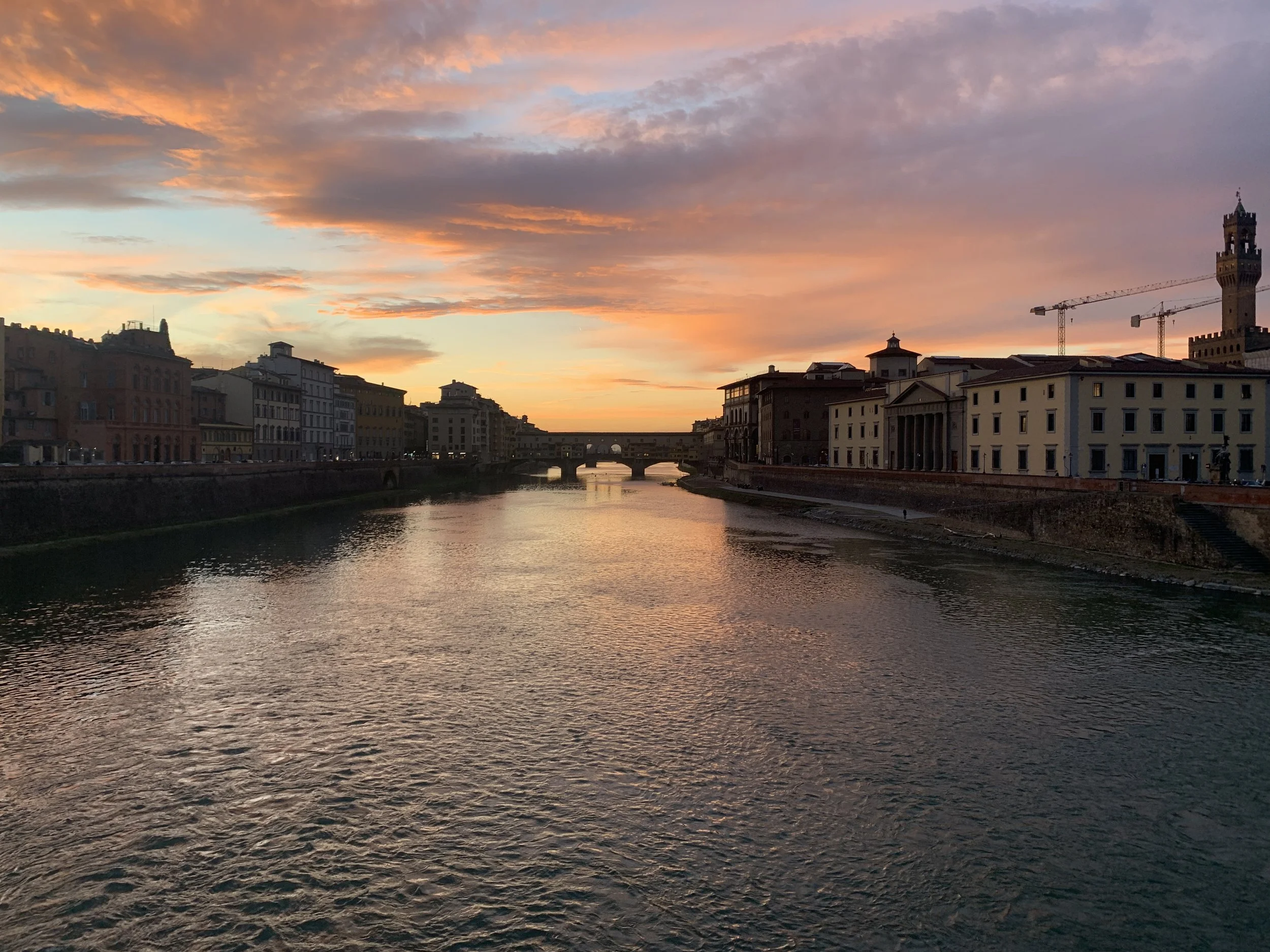 If you plan this hike as an evening hike you may get a sunset like this one on your way back across the other bridge looking at the Ponte Vecchio